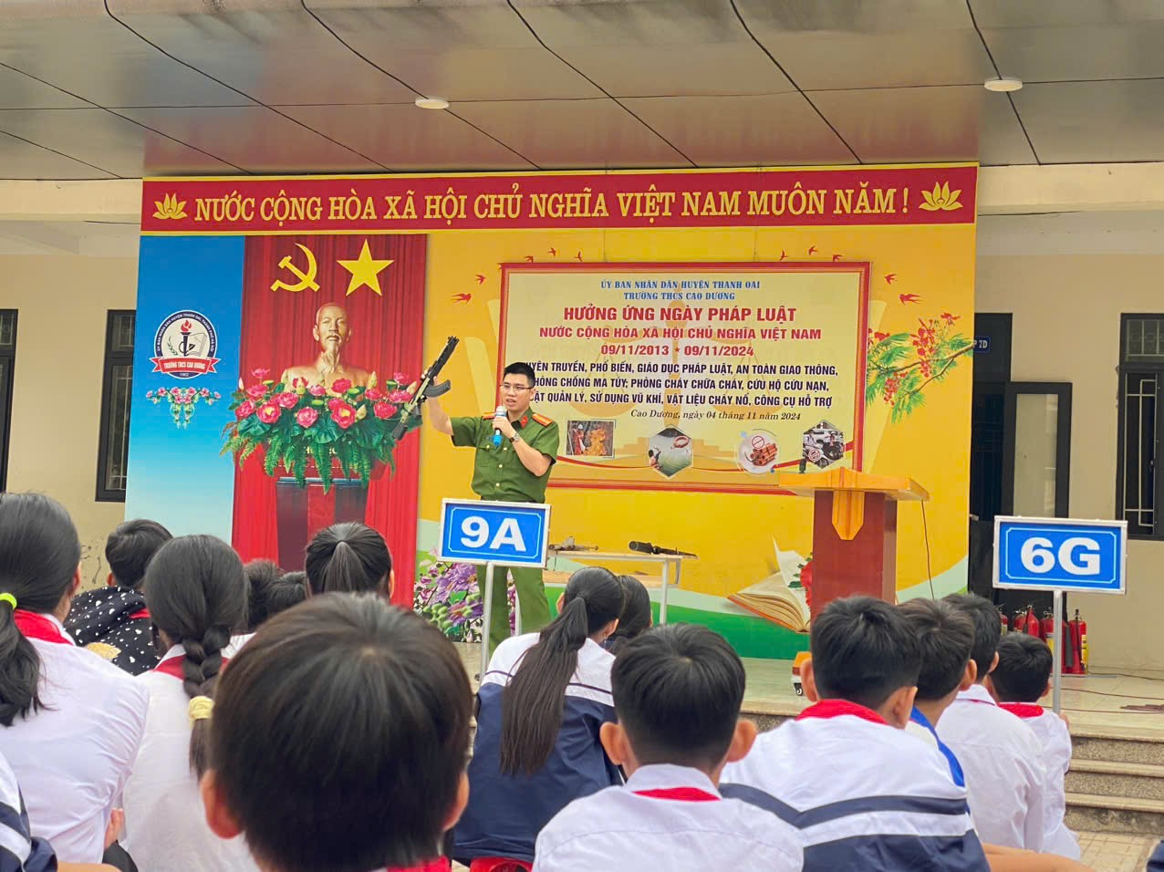 Sáng ngày 4/11, Công an huyện thanh oai phối hợp với Trường THCS Cao Dương tổ chức buổi tuyên truyền với chủ đề: Luật quản lý, sử dụng vũ khí, vật liệu nổ và công cụ hỗ trợ, phòng ngừa đấu tranh với tội phạm vi phạm pháp luật cho toàn bộ giáo viên, nhân viên và các em học sinh của nhà trường.