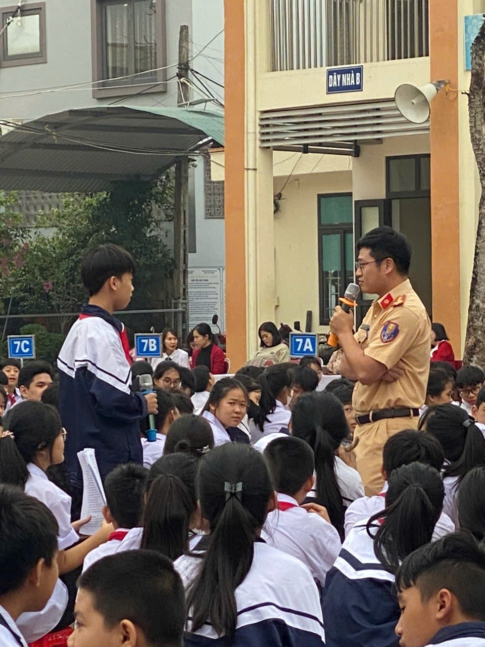 Công an huyện thanh oai Tuyên truyền Luật Quản lý, sử dụng vũ khí, vật liệu nổ và công cụ hỗ trợ cho thầy và trò Trường THCS Cao Dương