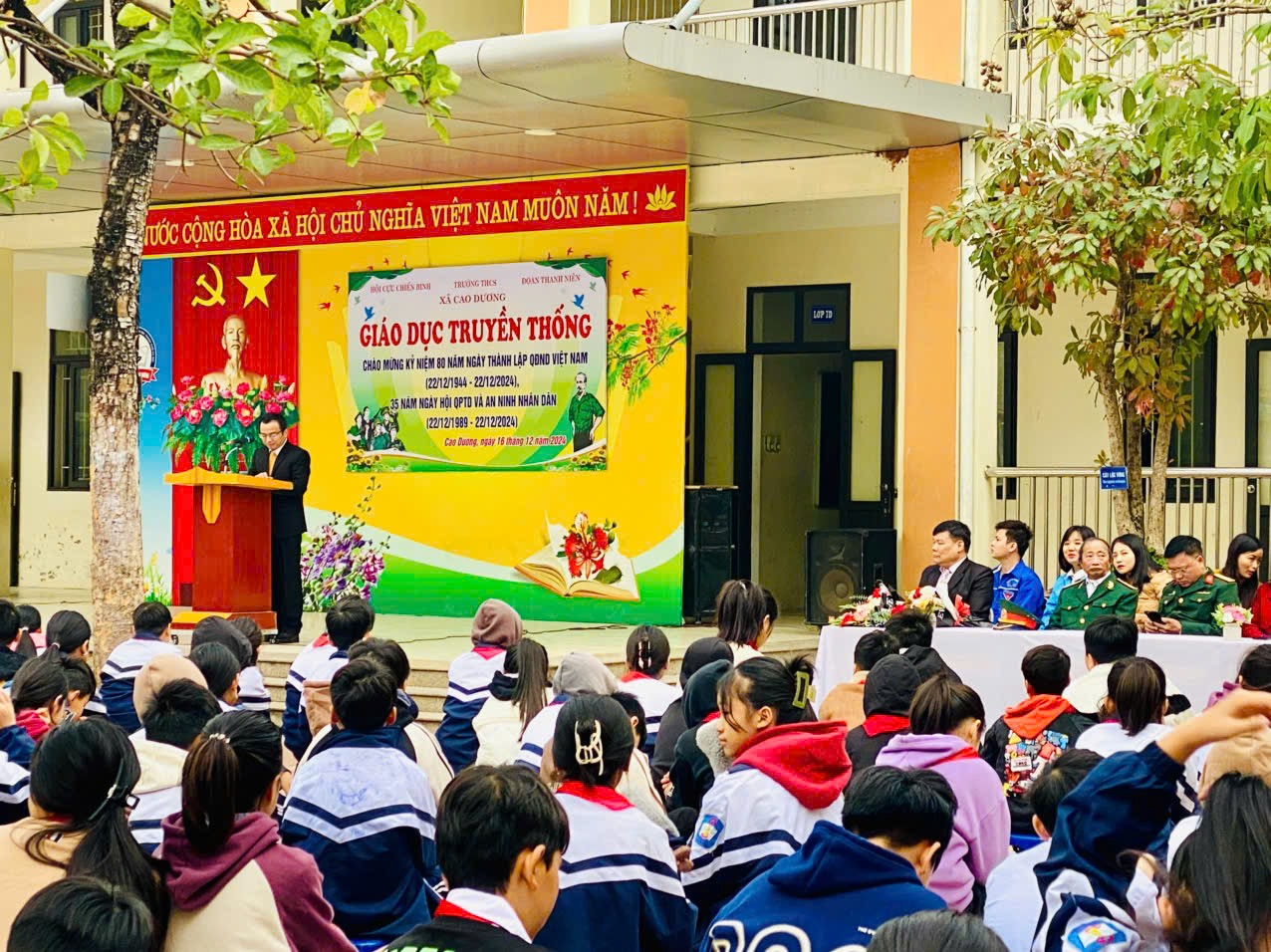 Nhân dịp kỷ niệm 80 năm thành lập Quân đội Nhân dân Việt Nam 22/12/1944 - 22/12/2024. Hôm nay ngày 16/12/2024 Trường THCS Thực hiện Hoạt động giáo dục truyền thống kỷ niệm 80 năm Ngày thành lập QĐND Việt Nam. Để mỗi học sinh đều tự hào về truyền thống “Trung với Đảng, hiếu với dân, sẵn sàng chiến đấu, hy sinh vì độc lập tự do của Tổ quốc, vì chủ nghĩa xã hội”. Đây là dịp để chúng ta bày tỏ lòng biết ơn sâu sắc tới các anh hùng, liệt sĩ, các thế hệ cán bộ, chiến sĩ đã cống hiến cho sự nghiệp giải phóng dân tộc và bảo vệ đất nước.